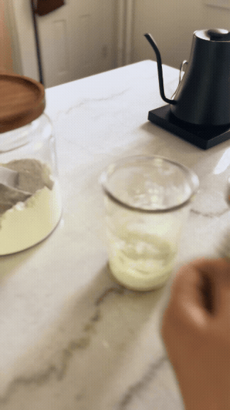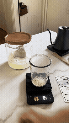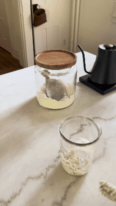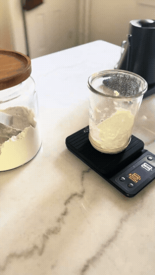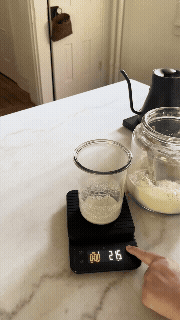 Discard about half the starter (around 75g, doesn’t have to be exact)