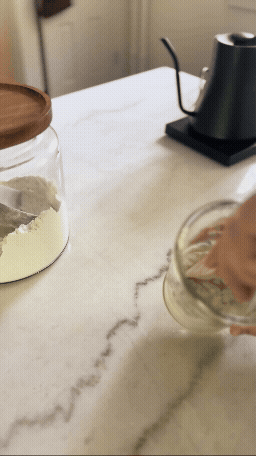 I want to note that in these photos and videos, I’m rehydrating an organic bread flour sourdough starter. Other starters/flours will look and act slightly different, but the same method applies to all.
